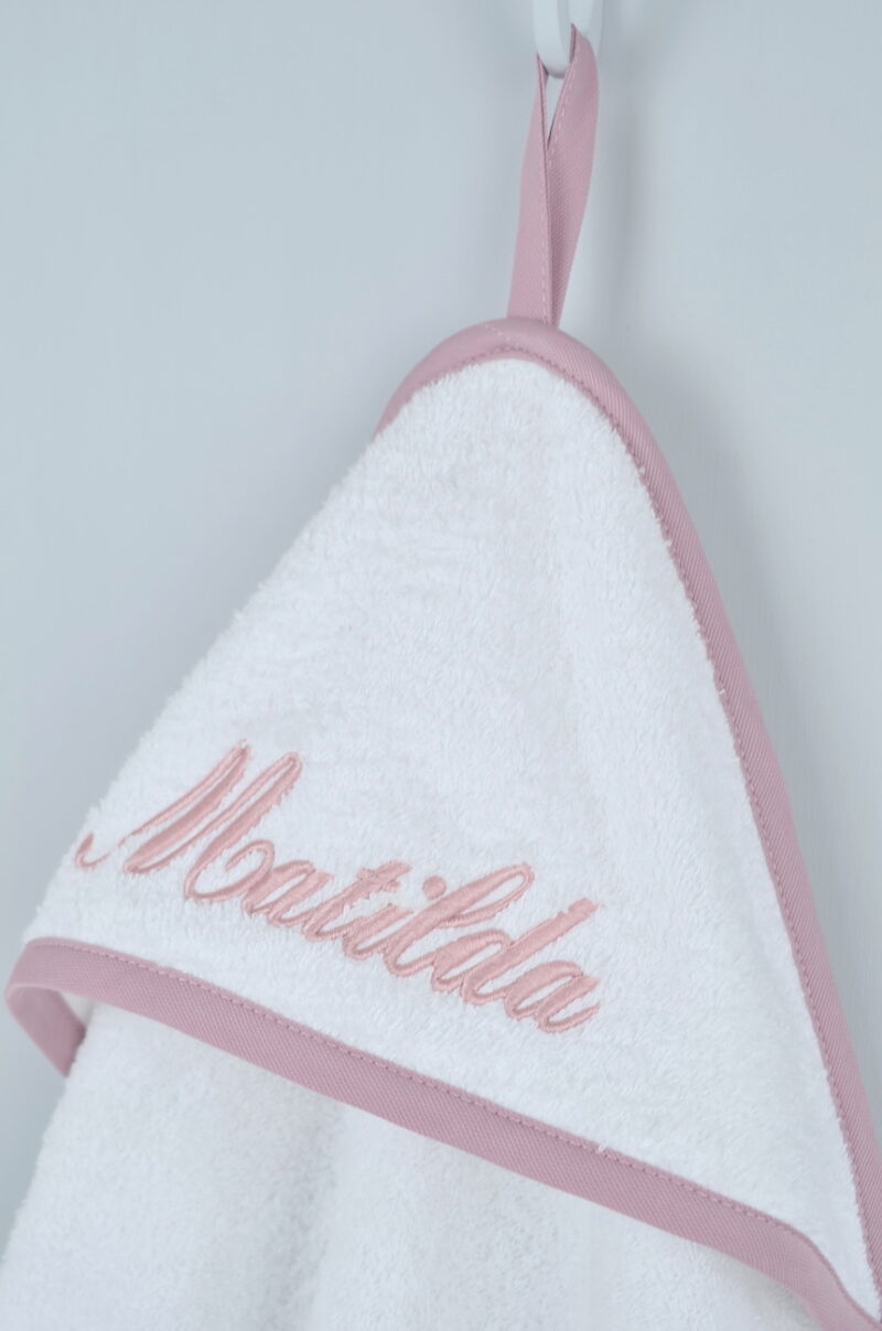 Il cappuccio puo’ essere personalizzato con nome ricamato o con disegno applicato e ricamato. Potete scegliere voi font o disegno ricamo e bordino.