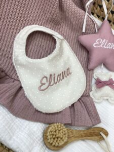 Ogni bavaglino può essere personalizzato su richiesta scegliendo tra le varie fantasie disponibili e con nome ricamato o iniziale