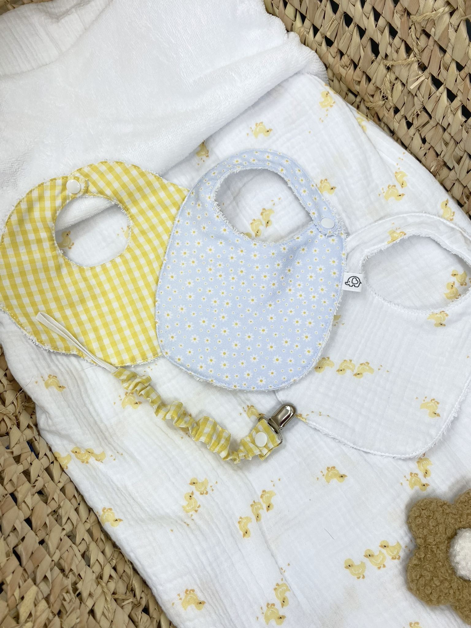 Bavaglini realizzati a mano su richiesta , con tessuto in cotone e morbida Spugna sul retro.