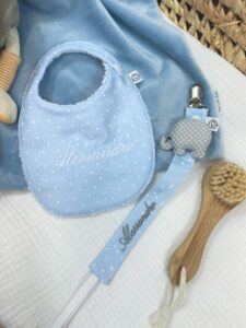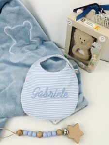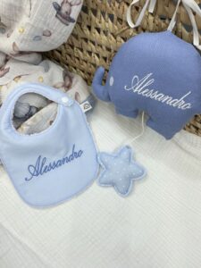 Ogni bavaglino può essere personalizzato su richiesta scegliendo tra le varie fantasie disponibili e con nome ricamato o iniziale