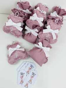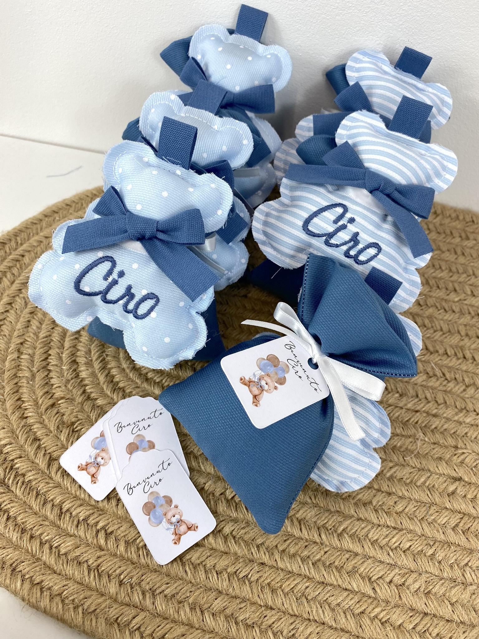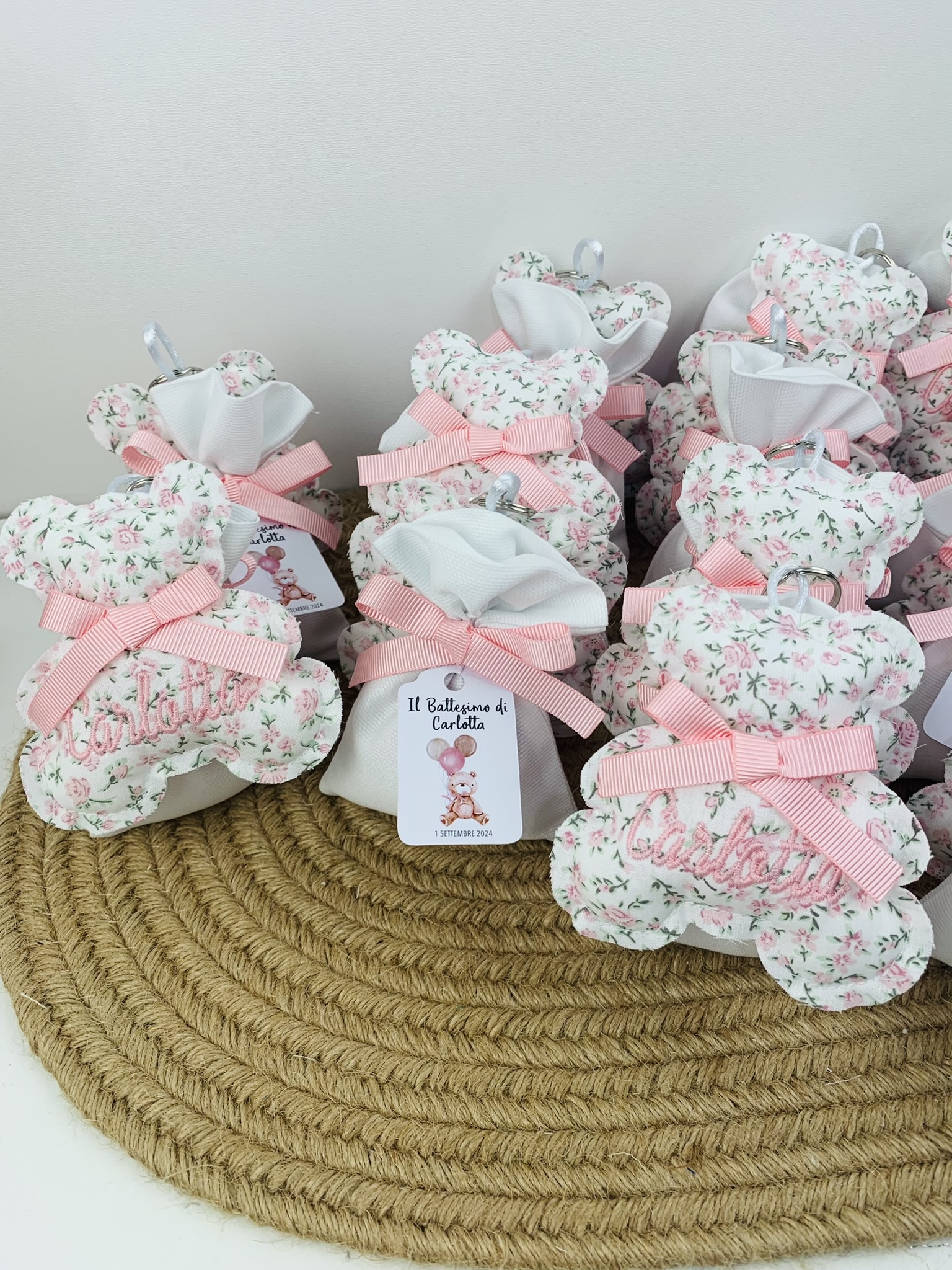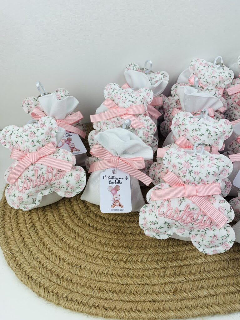 Bomboniera Orsetto in Stoffa personalizzato con Sacchetto Portaconfetti