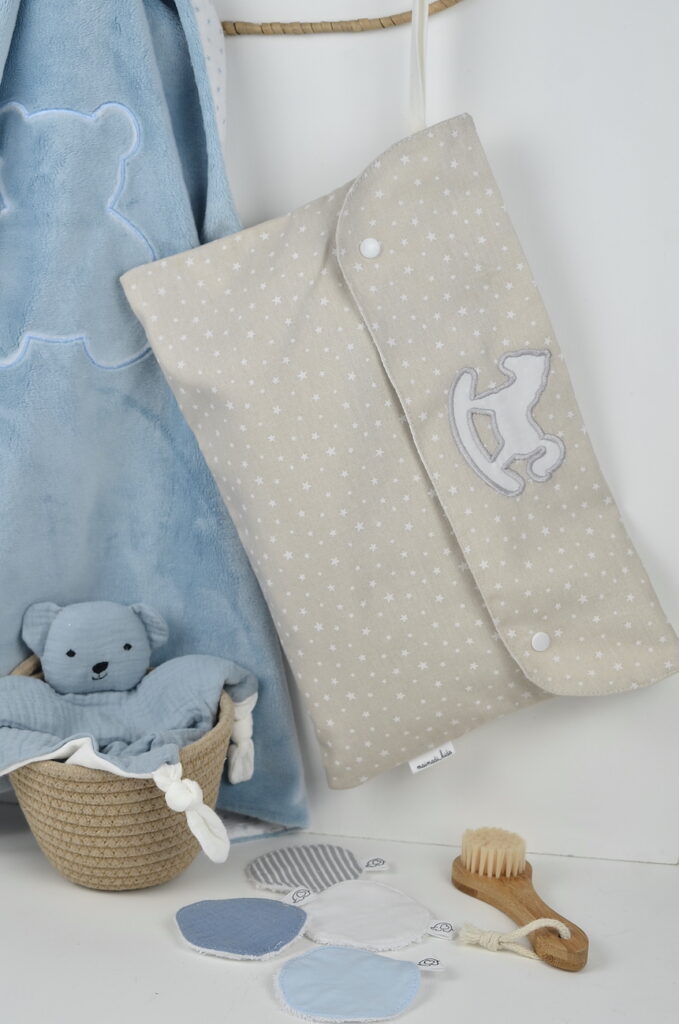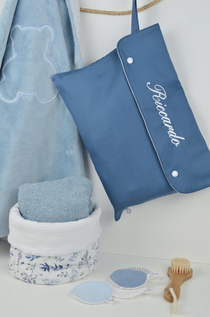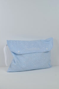 Busta Cambio Realizzata a Mano. Pensata per riporre il primo cambio da portare in ospedale. Confortevole e pratica per la mamma. Puo’ essere utilizzata come busta per contenere il cambio o prodotti igiene . O semplicemente come porta pannolini.