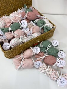-Personalizza : puoi scegliere tessuti e abbinamenti e gusto confetti – (Le grafiche per biglietto verrano inviate da me durante la lavorazione)