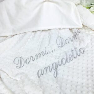 Realizzata da una parte nel caldo minky pile con il ricamo scelto da voi,