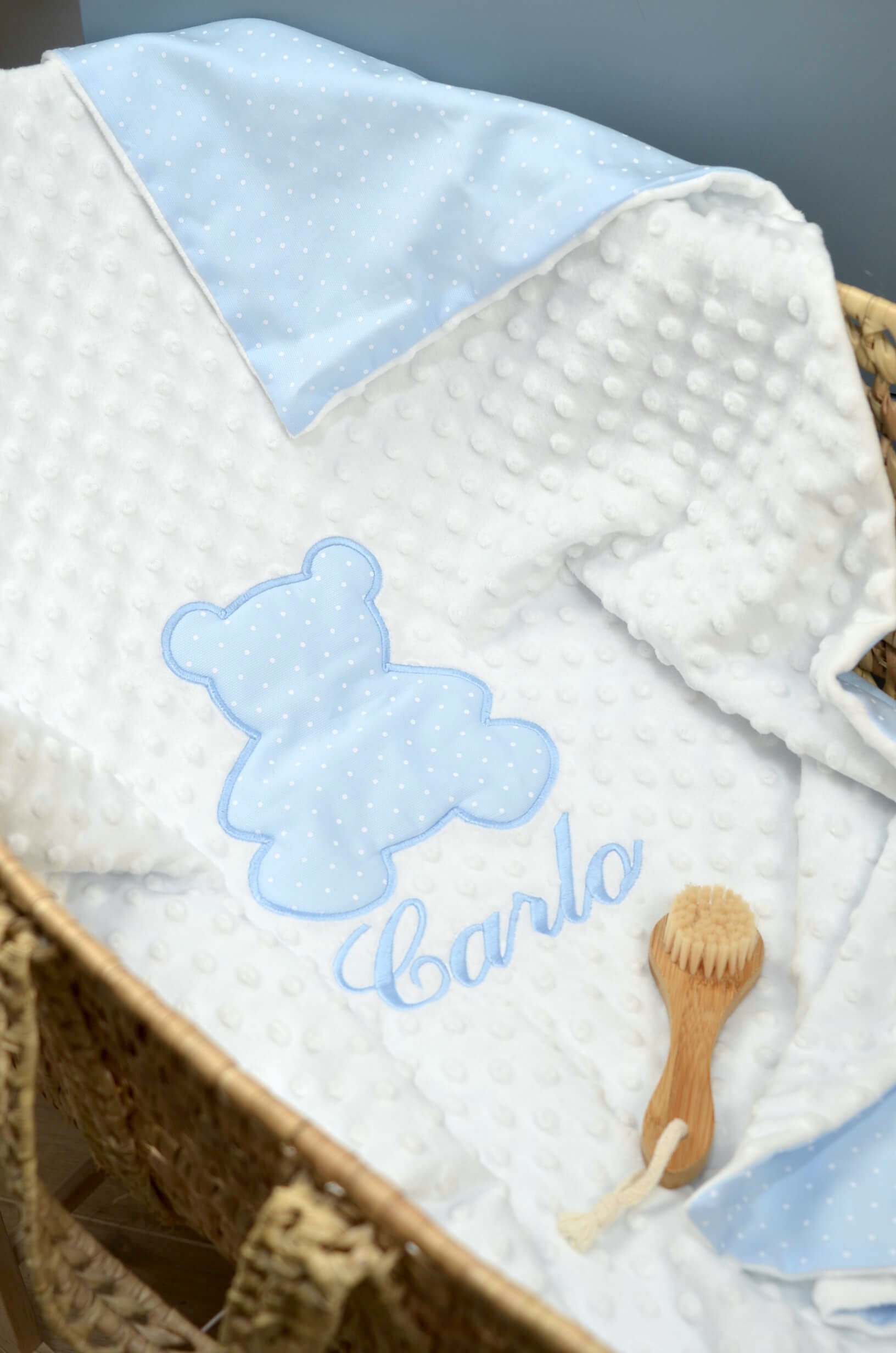Realizzata da una parte nel caldo minky pile con il ricamo scelto da voi,