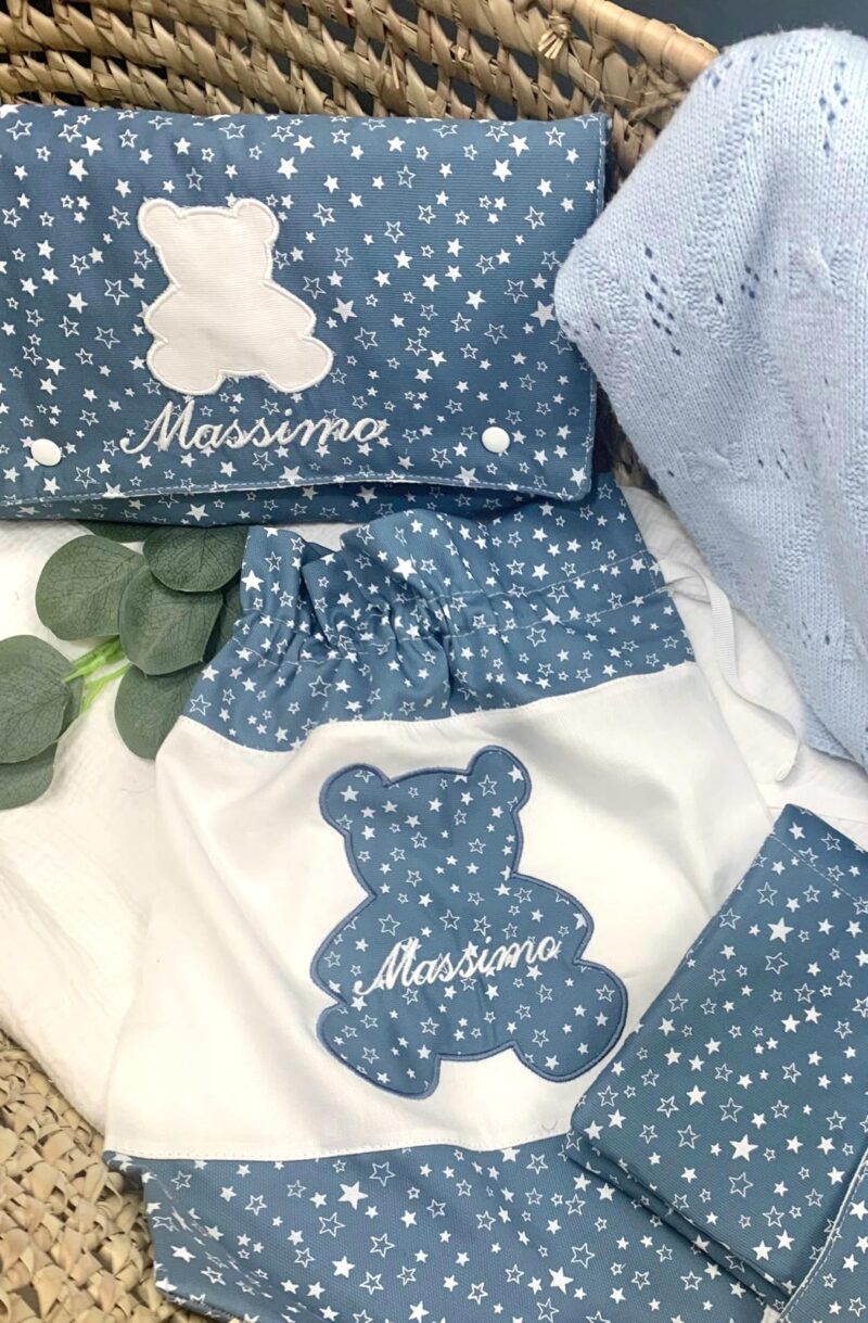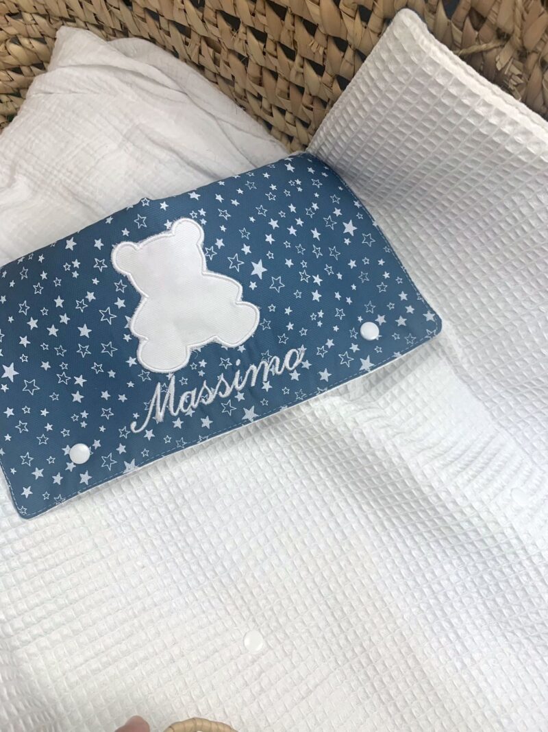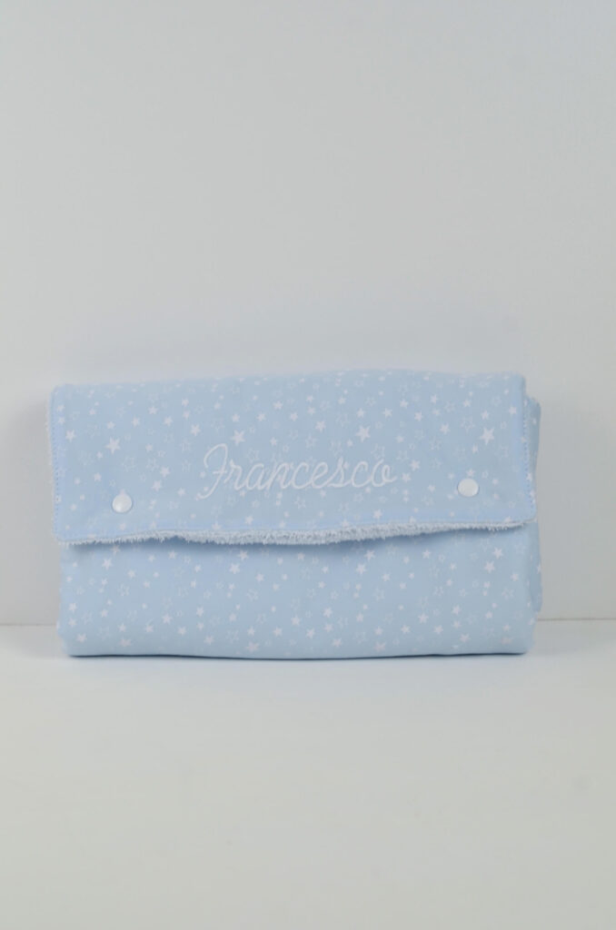 Il Fasciatoio Portatile da Borsa può essere personalizzato con il nome ricamato o Ricamo in applique’.