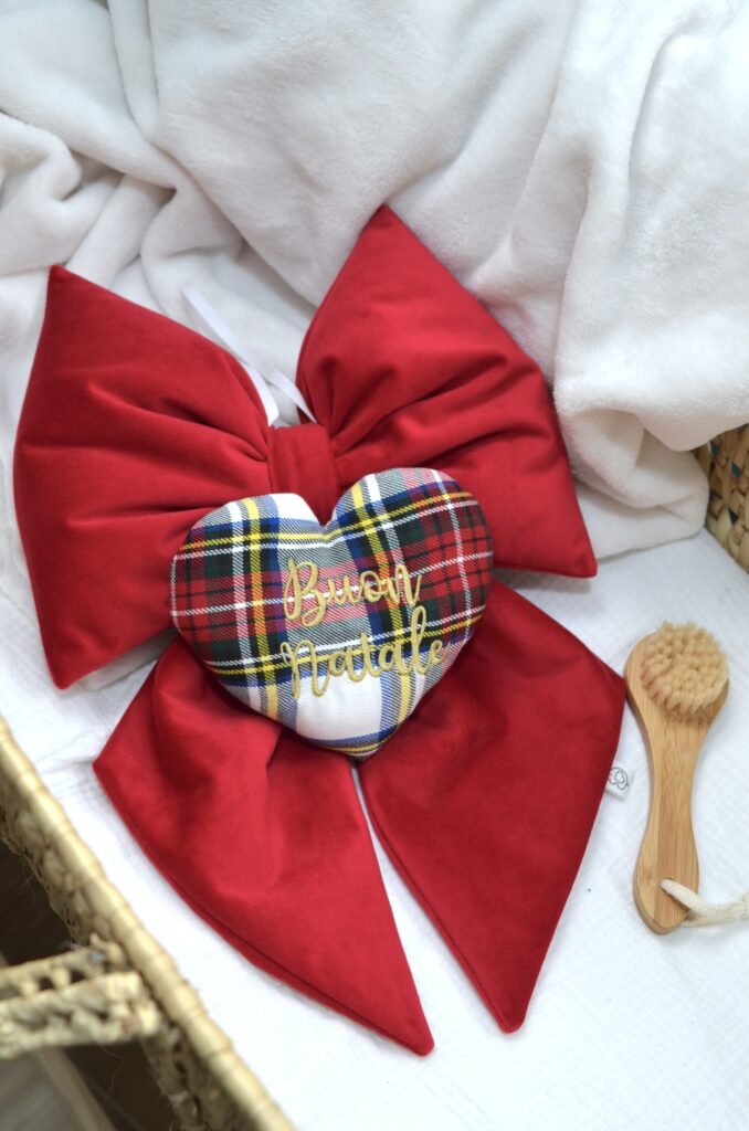 Una caratteristica distintiva di questo fiocco di Natale è la sua possibilità di personalizzazione. Puoi scegliere di farlo personalizzare con scritte o con diverse fantasie di velluto, rendendolo veramente unico e in linea con il tuo stile natalizio.