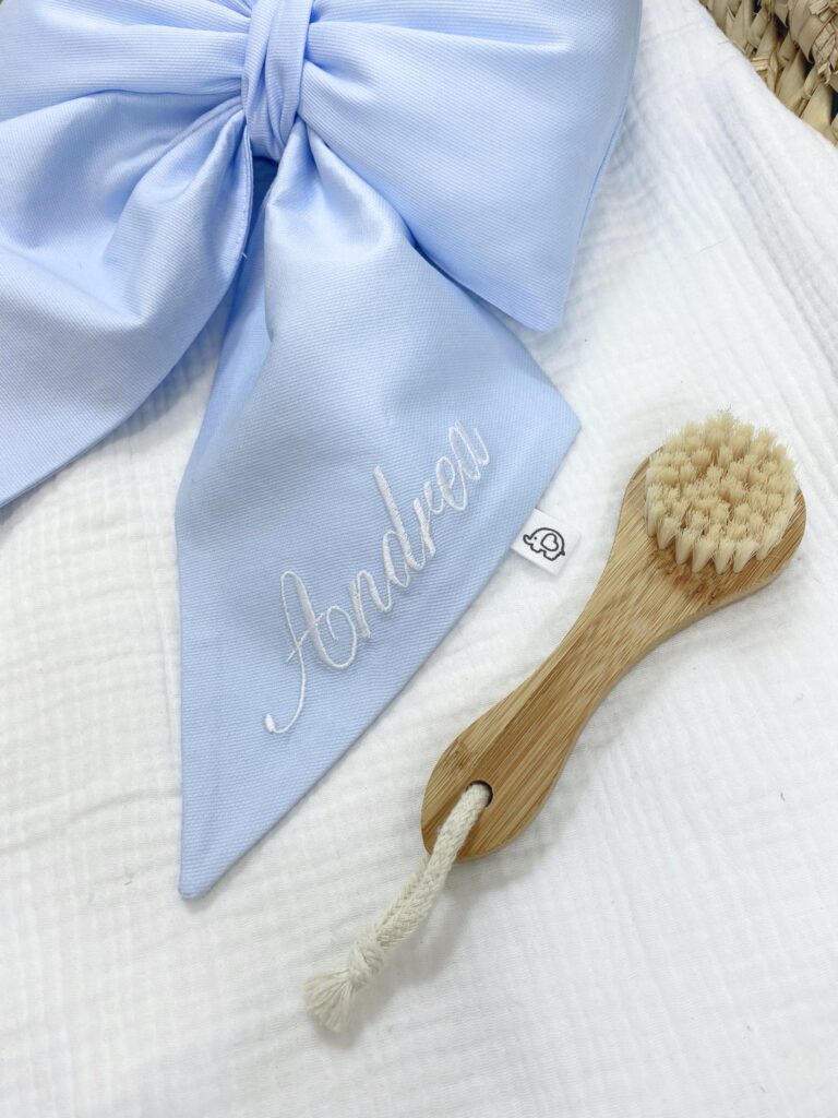 OPZIONE COME DA FOTO: Inserisci nome da ricamare , scegli il fiocco tra le foto proposte e aggiungi al carrello.