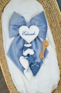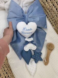 PERSONALIZZA: Scegliendo questa opzione, puoi scegliere passo passo colore per fiocco, numero e tipologia pendenti, inserire ricamo nome .