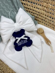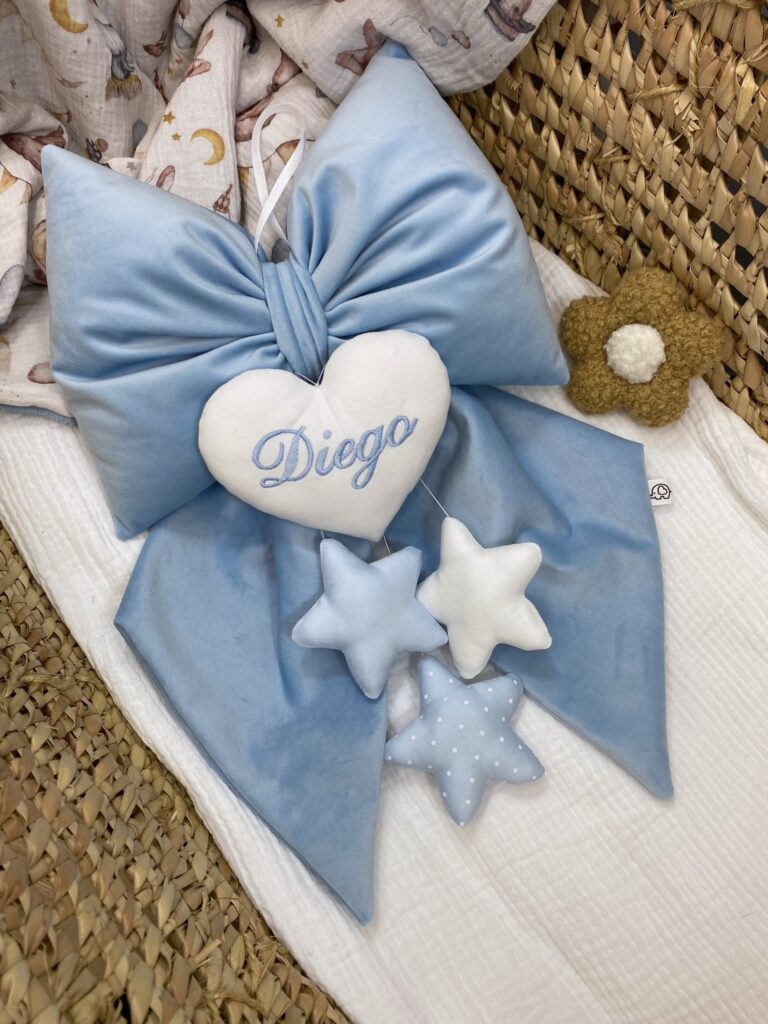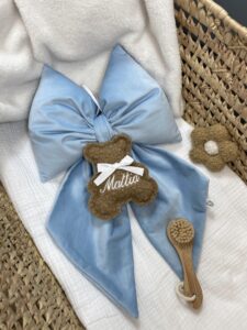 OPZIONE COME DA FOTO: Inserisci nome da ricamare , scegli il fiocco tra le foto proposte e aggiungi al carrello.