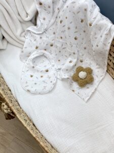 Mussole Neonato – La mussola e’ un tessuto dalla trama aperta che ricorda una garza. E’ molto semplice e delicato, ideale per chi ha la pelle sensibile.