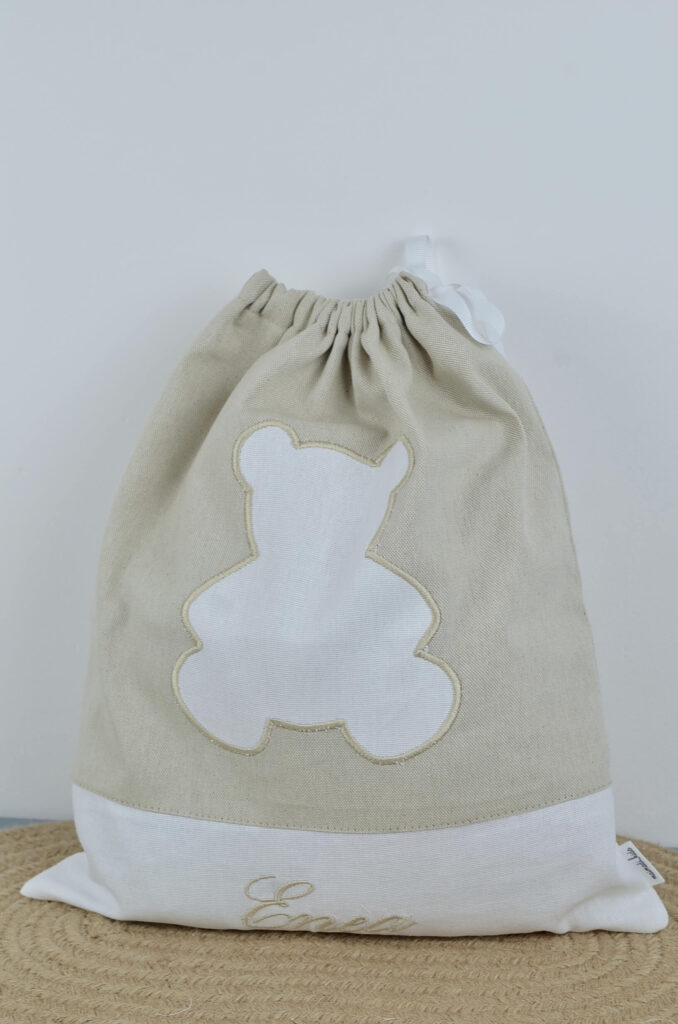 Sacco cambio realizzato a Mano con tessuto in cotone. Offre comfort e praticità sia alla mamma che al neonato. Da utilizzare come sacchetto dove riporre il primo cambio da portare in ospedale , per ricordare i primi giorni del neonato, ma utilizzabile anche in futuro come porta cambio per l’asilo.