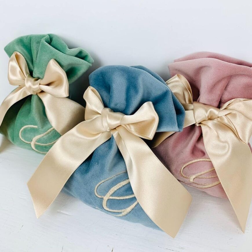 Sacchetti Portaconfetti in Velluto Personalizzati con Nastrino Doppio Raso