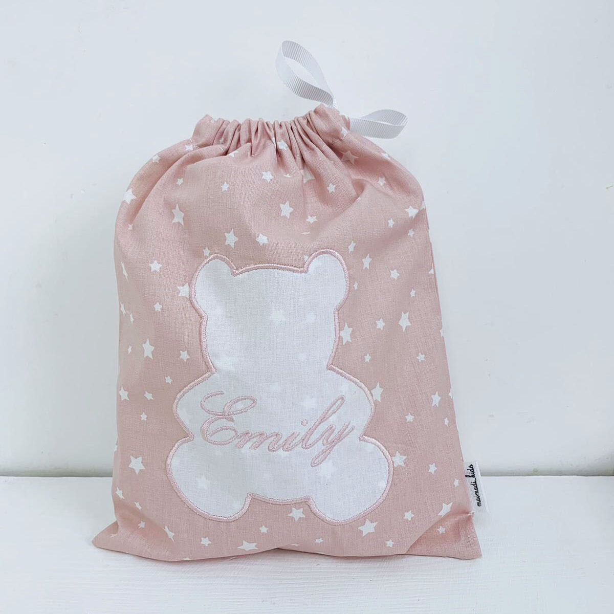 Sacco cambio realizzato a Mano con tessuto in cotone. Offre comfort e praticità sia alla mamma che al neonato. Da utilizzare come sacchetto dove riporre il primo cambio da portare in ospedale , per ricordare i primi giorni del neonato, ma utilizzabile anche in futuro come porta cambio per l’asilo.